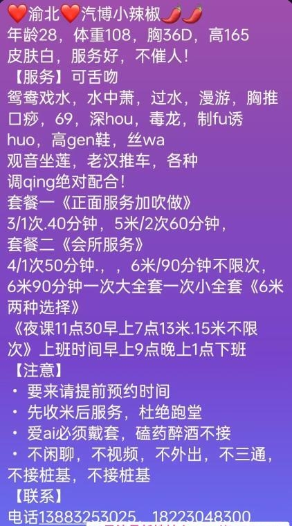 亲测的一个大姐姐,联系就去了老师的地方,老师穿着包臀裙看着就是那种丰满屁股又大的那种,立马洗澡来到床上老师直接压在我身上,然后就是各种舔各种调情,给我口的时候还吸的我差点射出来了,立马带上套套抱着老师的大屁股干了进入很热,水也很多配合度很高基本都是在迎合我,体验感很足!3张性价比很不错,泻火好去处。